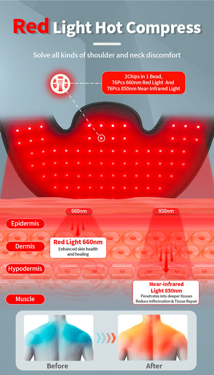 Unsere LED -Therapie -leichte Schultergürtelgürtel. Seine Vorteile liegen in hoher Sicherheit, einfachem Betrieb und der Fähigkeit, sich mit anderen gesunden Gewohnheiten zu kombinieren, um die doppelten Ziele der Schmerzlinderung + vorbeugende Pflege zu erreichen. Der Schultergürtelgürtel des Therapie -Lichts ist einfach zu bedienen. Legen Sie sich einfach hin oder setzen Sie sich bequem, decken Sie sich mit der Decke ab und schalten Sie das Gerät ein. Sie können die Intensität und Dauer der Behandlung entsprechend Ihren persönlichen Bedürfnissen und Vorlieben anpassen.